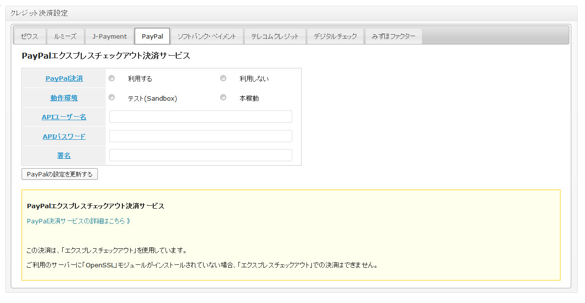 3Dセキュアとおよびセキュリティーコードの利用は、決済サービス契約時に決定します。契約内容に従って指定しないと正常に動作しませんのでご注意ください。